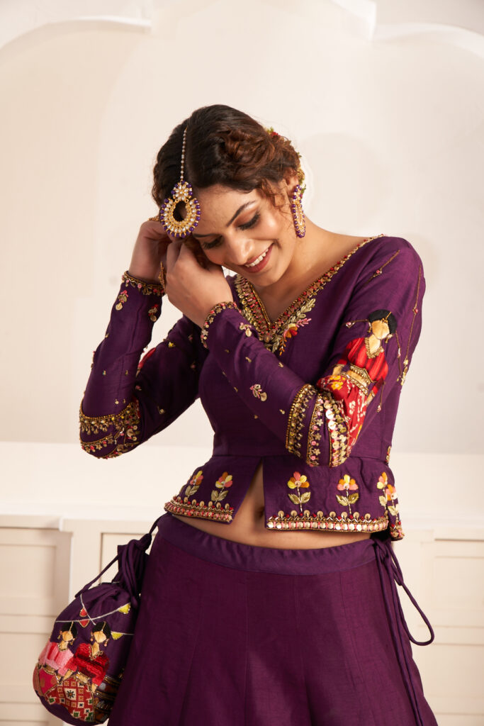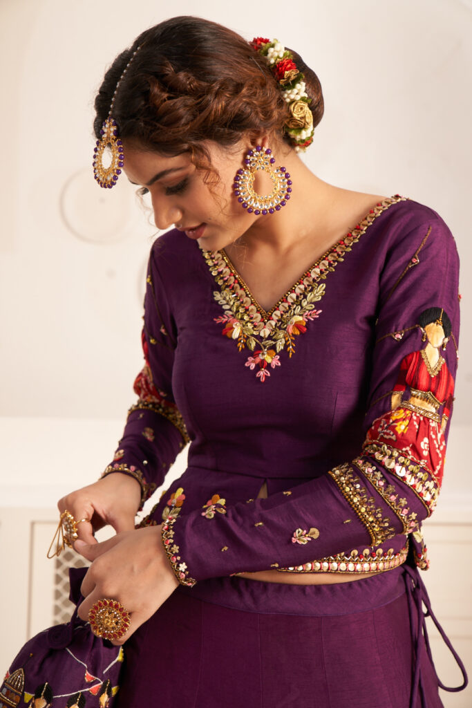 Shahi gharana purple blouse in flat raw silk