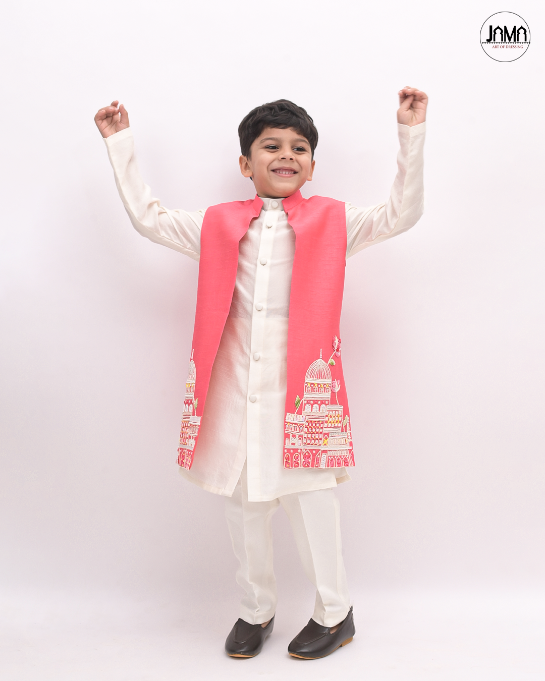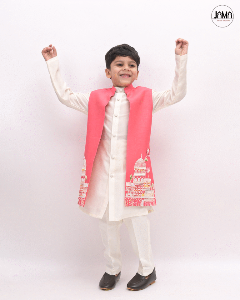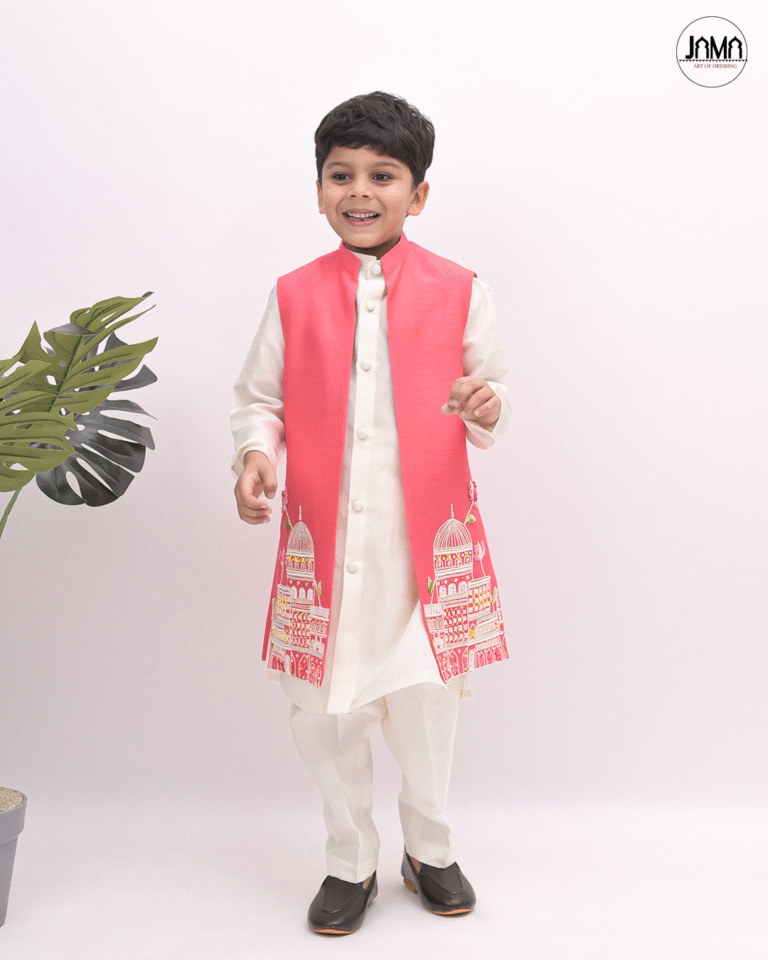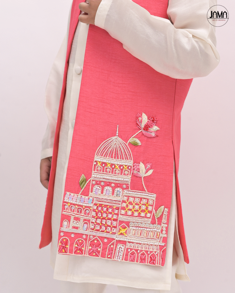 CONTRAST EMBELLISHED OPEN JACKET WITH KURTA SET