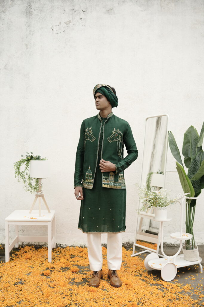 HAND EMBROIDERED BOTTLE GREEN BANDI SET