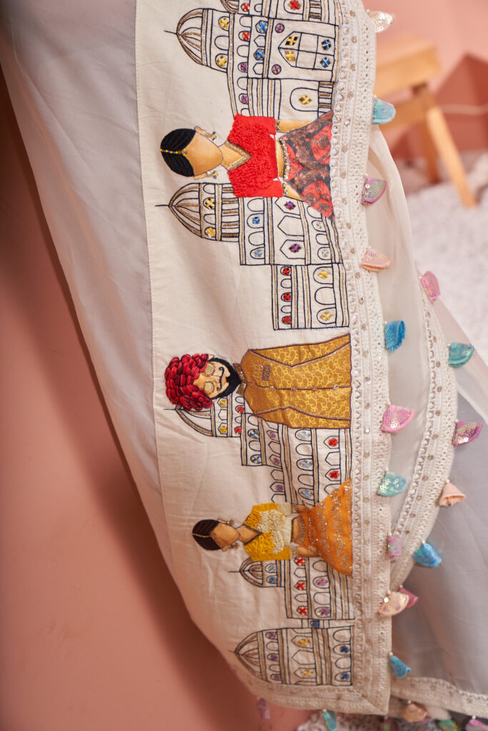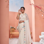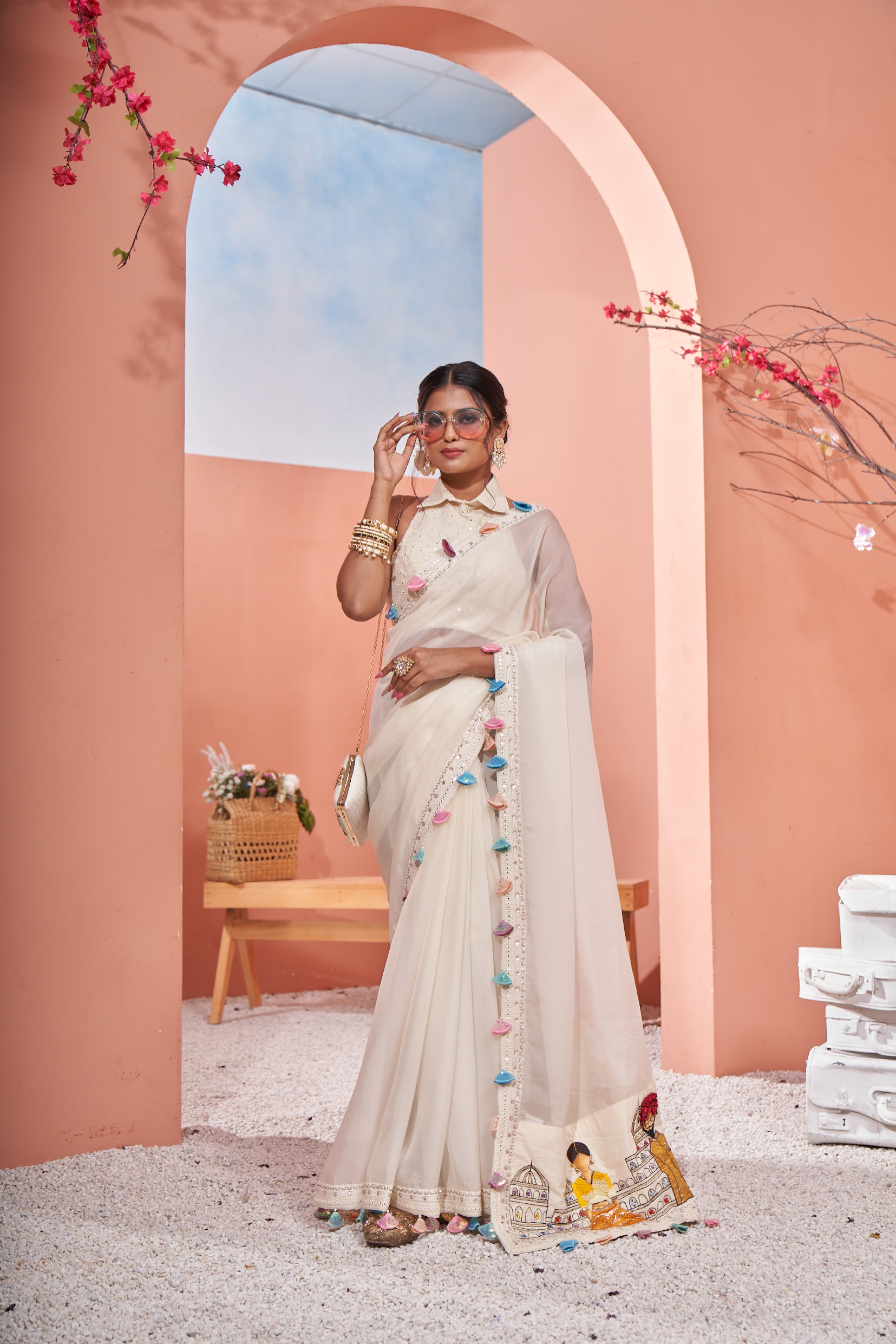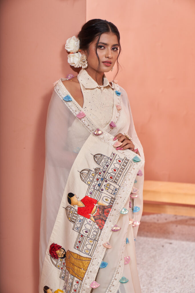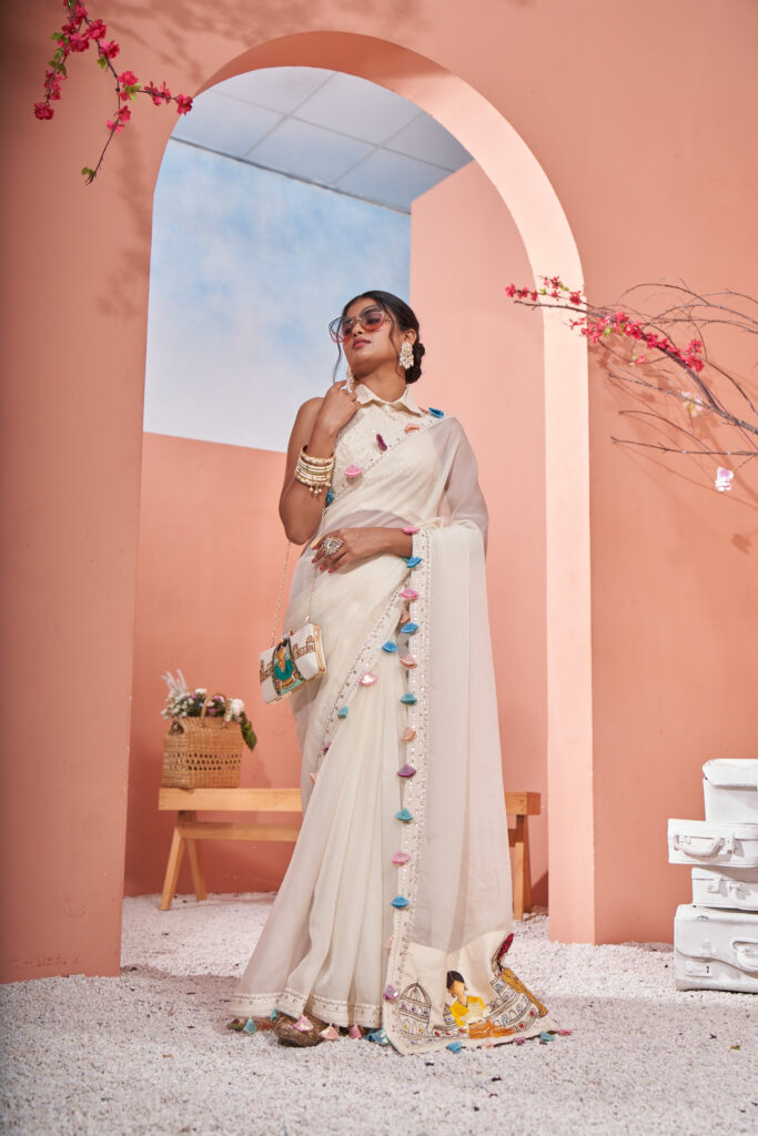 Off white organza saree patched with our
